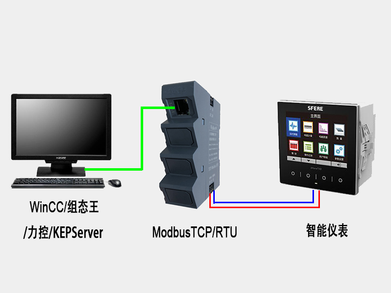 通過ModbusTCP/ModbusRTU,可將帶有ModbusRTU協(xié)議(RS485)通訊的設(shè)備,如:智能儀表、PLC、變頻器等直接與上位機通訊。